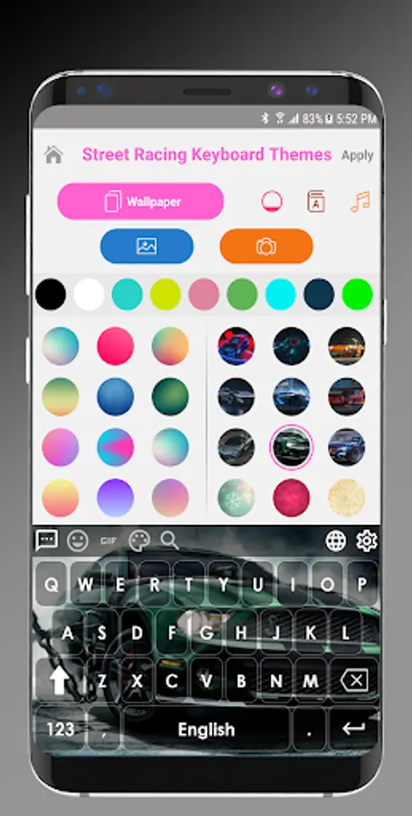 This โStreet racing keyboard themesโ has been tested on devices such as Samsung Galaxy S10 S6/S7/S8/S9, Samsung Galaxy Tab3, Samsung Galaxy Note 8, Nexus 5/7,HTC One and Sony Xperia Z.