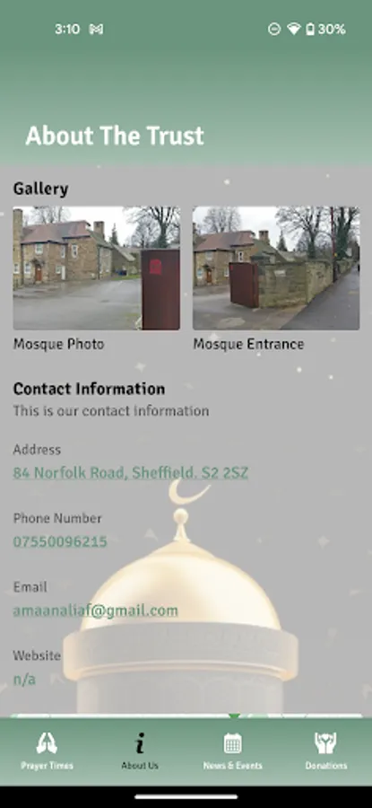 We are an Asian Community Centre based on Norfolk road serving the Asian Muslim community in the Sheffield S2 area. This is the prayer times and the mosque congregation prayer times. We will continue to update the app with the latest events that is happening around the mosque. You can also find the Friday Jumu'ah prayer times in the app.