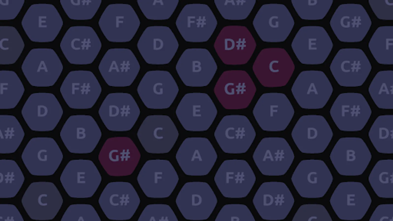 Most of Hexpress instruments have unusual honeycomb note arrangement that's sometimes called "harmonic table note layout". It is identical Tonnetz layout, only rotated. It has many interesting properties compared to standard piano layout:
