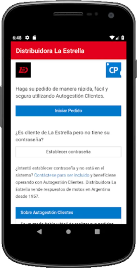 Exclusive access for customers for Distribuidora La Estrella through the Self-Management Clients platform.
