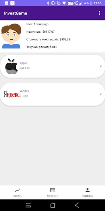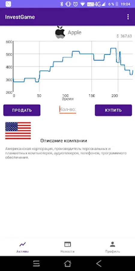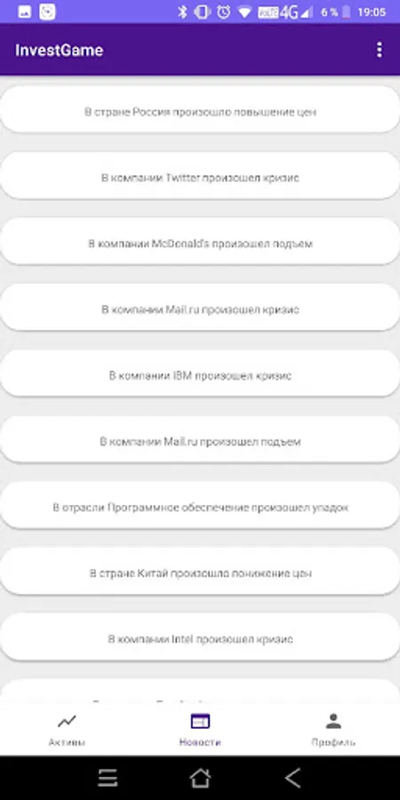 Using our application you can learn the basics of investing, while not risking your real money. In the simulator, the securities market was recreated, the price of which varies depending on the generated in-game events. Your task is to learn to understand how events affect the price of shares, and use this to enrich.