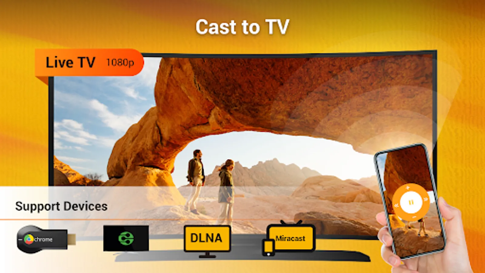 Cast to TV helps you cast local files like videos, music and images from phone to TV. Enable you to make presentation, review photos, play music and watch movie on big screen. You can also cast web browser to tv.