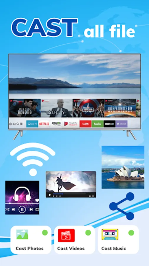 Automatically recognize video, audio, and photo files on your device and SD card with cast tv.