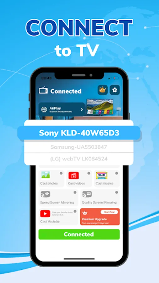 Cast to TV - Screen Mirroring supports a variety of platforms, including Chromecast, Roku, IPTV, and Fire TV, making it easy to connect your phone to almost any TV using the web to caster or screen cast functionality. Say goodbye to squinting at your small phone screen and hello to the ultimate visual experience with Cast for Chromecast!