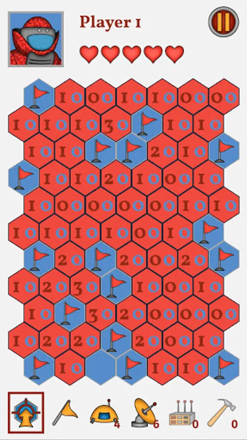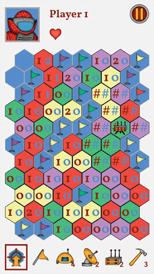 In this version of game the field consists of hexagons and, in addition to mines, contains specific tools that will slightly change the gaming experience. It is also possible to play several players at once in a competitive mode, where players take turns and try to score more scores for various actions on the field.