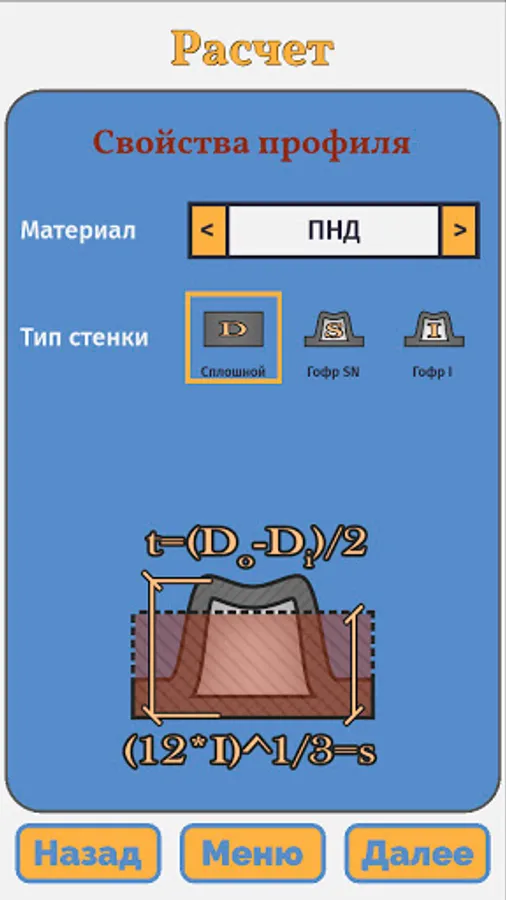 The program can determine the moment of inertia for a corrugated profile based on the class of ring stiffness SN, which can be useful, since SN is always known, but the moment of inertia is not given in all catalogs.