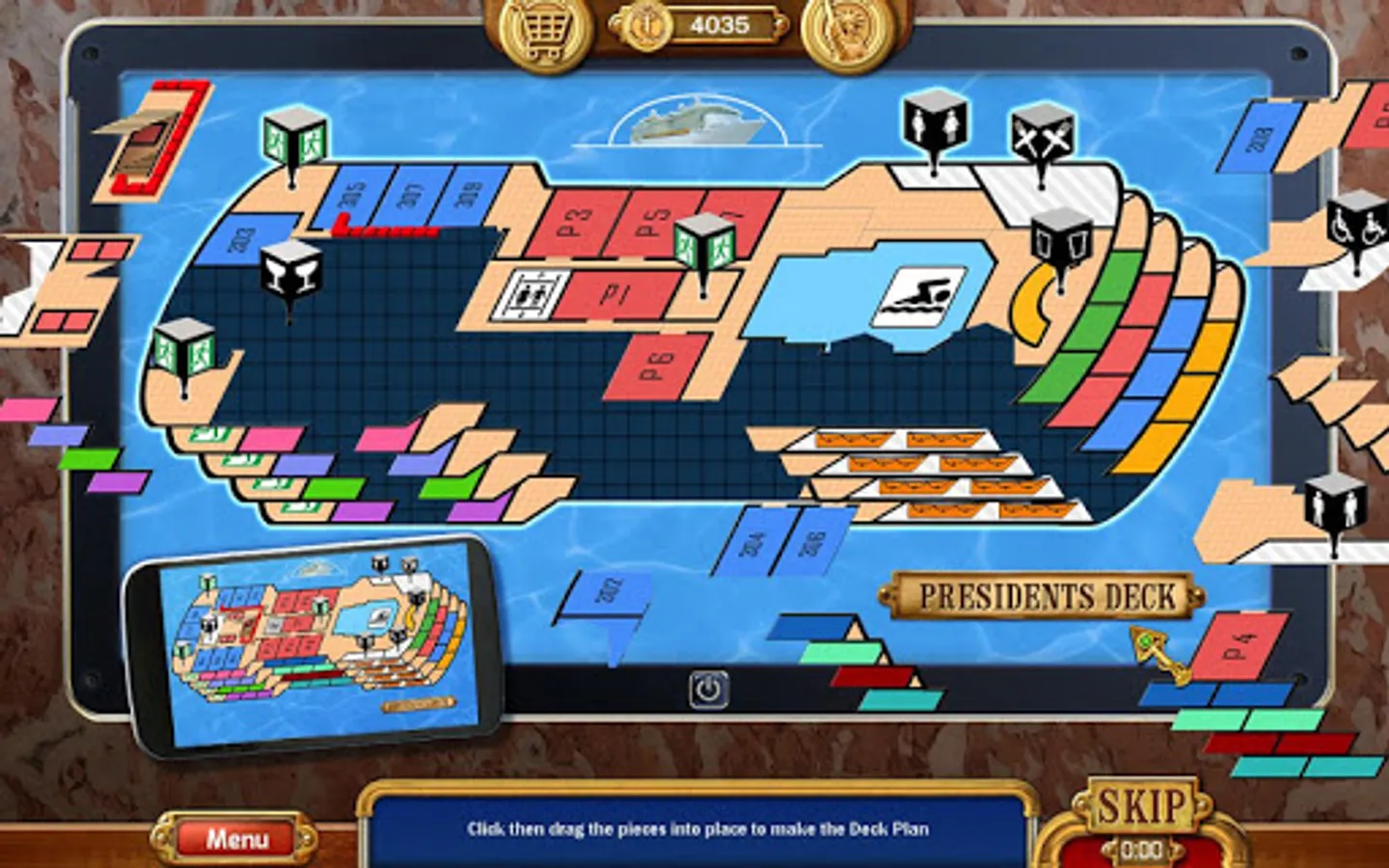 Collect Souvenirs of the cruise. Look for hundreds of hidden objects, items Lost by Passengers, Trash for Recycling. Play superb Mini-Games. Earn Merit Badges for your Achievements.