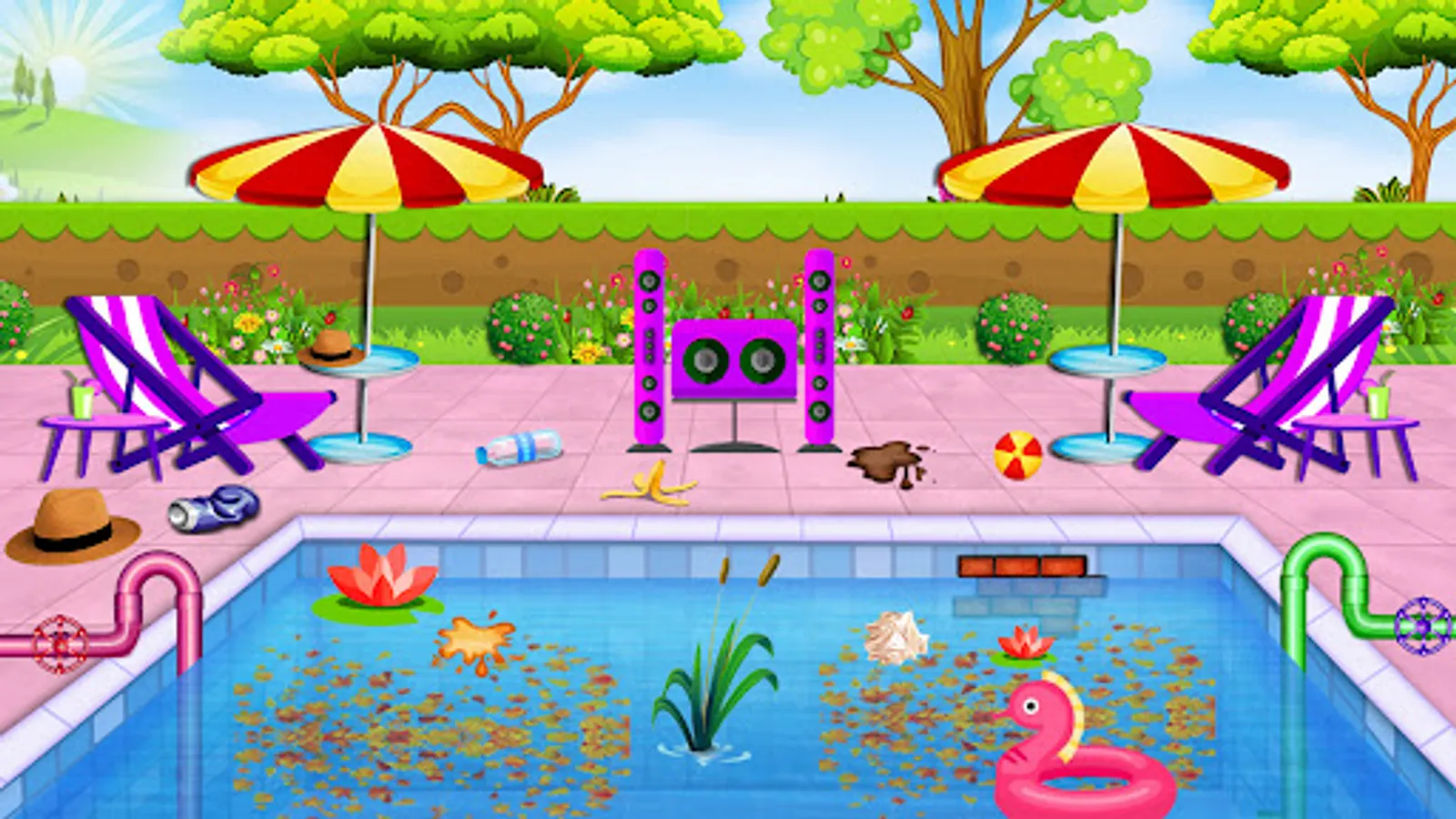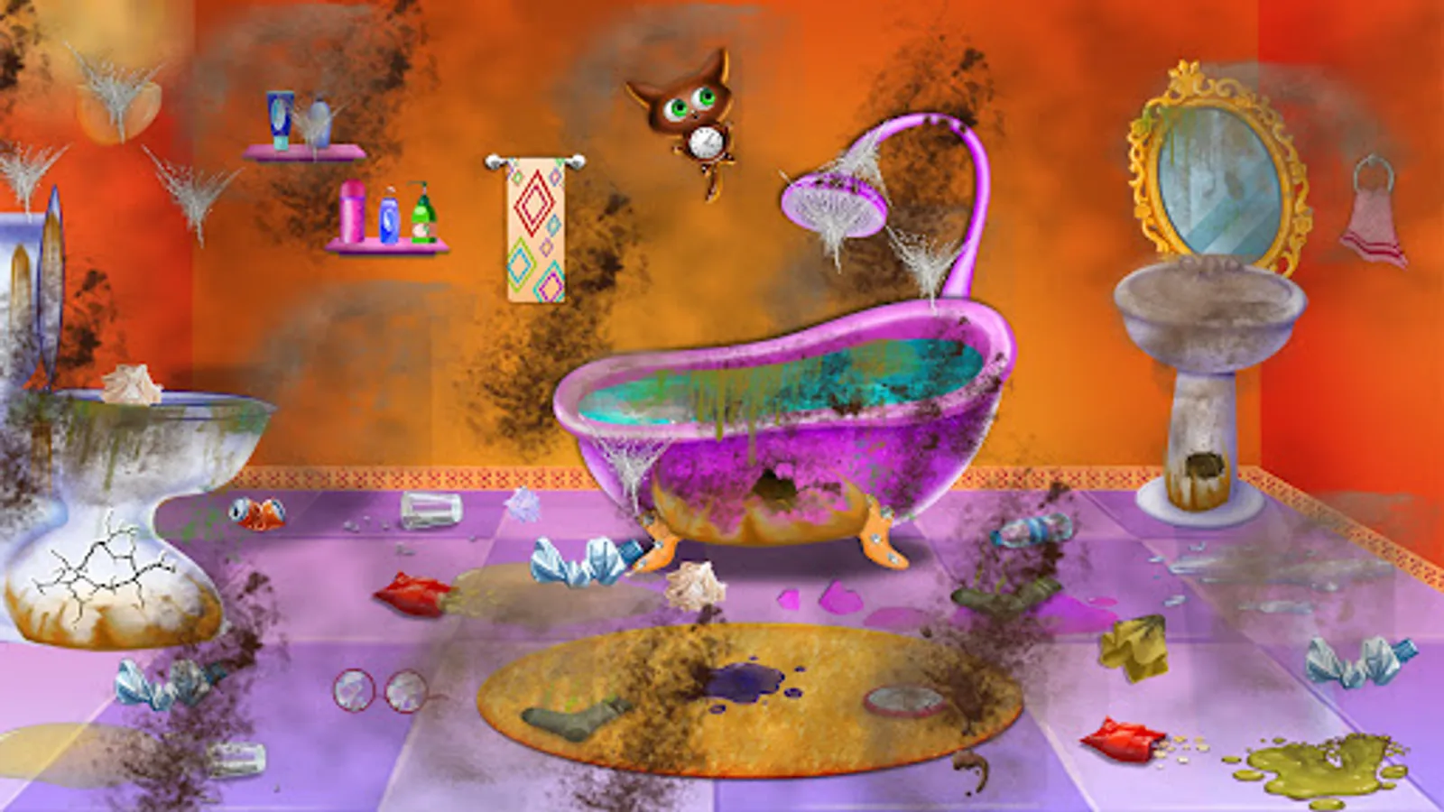 Hey Guys! Are you ready ? To clean up and fix the messy & dirty house.Keep yourself motivated to complete the task given to you.Learn the House Cleaning Skills. Clean the house and surroundings.Clean up spiders, remove dusts, put away garbages, clean bathrooms and pool water, fix all the thing and objects on to their perfect places. Make your dream house look beautiful and clean.
