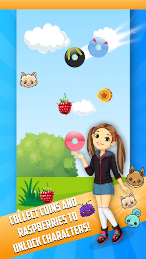 Pokerun is a mini tap to play arcade game where user has to play & control the super-easy-controlled flappy pokemonSter in the endless flappy run with main goal to avoid pokeRedBalls, pokeBlueBalls and pokeBlackBalls and also collect objects. The difficulty of game speed and poke Red/Blue/Black ball speed are increases by time. Also during the endless run, player collects coins, razz berries, mystery boxes and a lot of objects. Player can unlock PokemonSter skins with the collected objects. A high score is always a game goal, so what is yours high score?