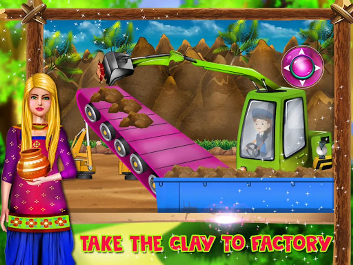 In pottery making shop, we will need mud for clay art. So we will take mud from mountain with the help of crane machine. Load all mud into exporter truck so that truck can deliver mud to the pottery making shop. Here we will drag mud at the specific area of land to create pottery. When clay art is about to end, then act like a ceramic builder, we will make clay balls with machine.