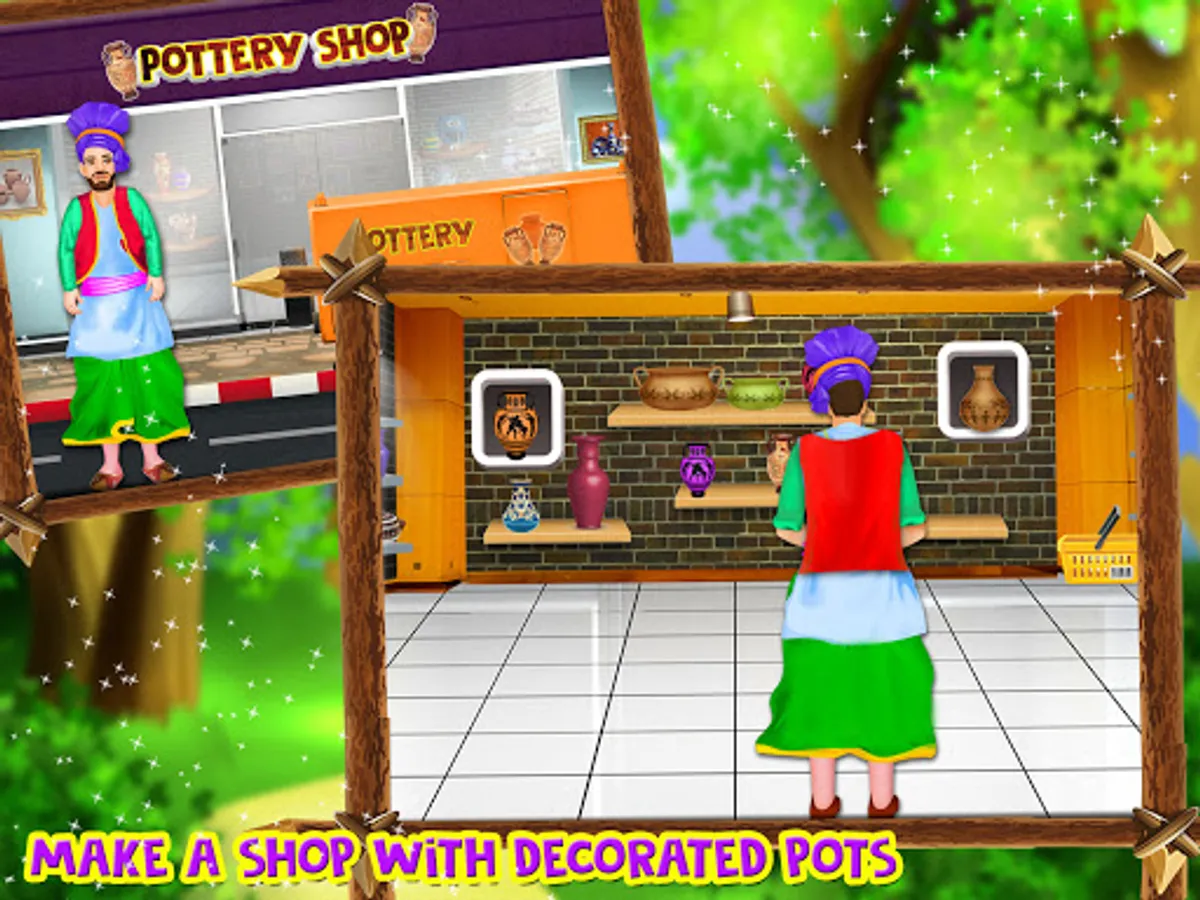 In our painted pottery making factory, we will make a beautiful flower pot/pitcher and draw sketch which you love to create pottery items. Paint this sketch in different funky colours with the help of colour brush. As we make some painted pottery being a pottery maker, we will deliver at the ceramic builder shop. Pick all item and place on shelves being a pottery maker.