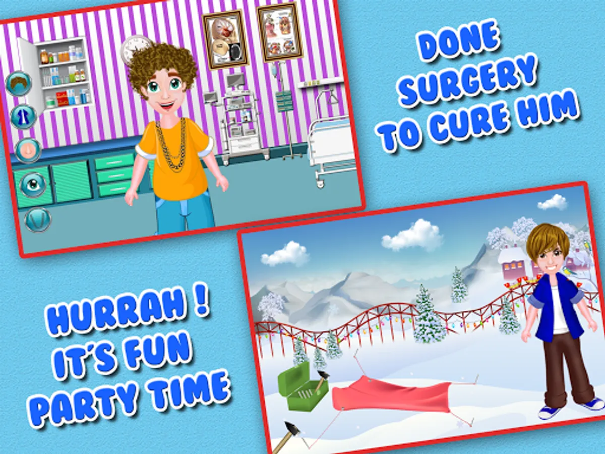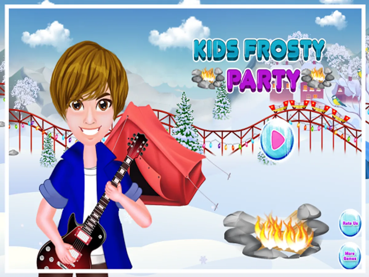 In this adventure story, school management call parent teacher meeting for frozen icy trip. Parents were very happy after this boys excitement. Boys enjoy winter trip with friends. Various kinds of seasonal flowers bloom in striking colours with snowflakes and augment the beauty of nature. They also play in snow and cherish their self in exotic way. So many activities were done by attractive juniors like snow ball fight, hide & seek and badminton. Little boys enjoy music night with frozen party treat given by school head. They love to enjoy bonfire parties in this frozen weather to enjoy music and awesome gathering of friends and colleagues. If you all really love this snowfall weather then definitely play this Boys Frosty Party - adventure game.