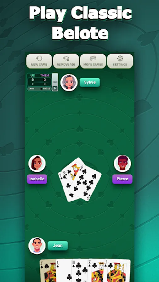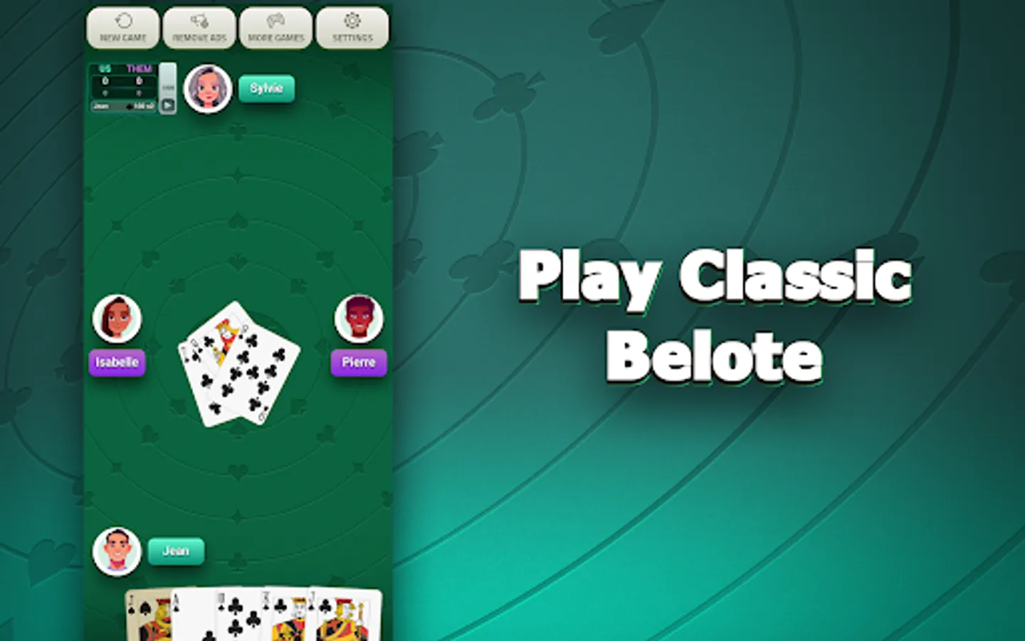 Play Belote as a single player anywhere, anytime! Download your favourite card game - Belote Offline! The game of belote attracts many card players thanks to the fun, engaging and strategic aspects of the game.