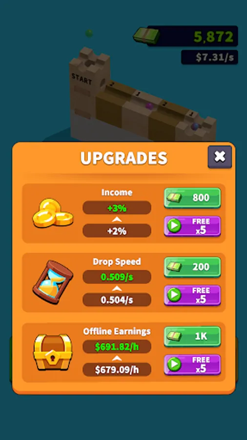 Upgrade your blocks to keep the marbles rolling and the earnings coming in.