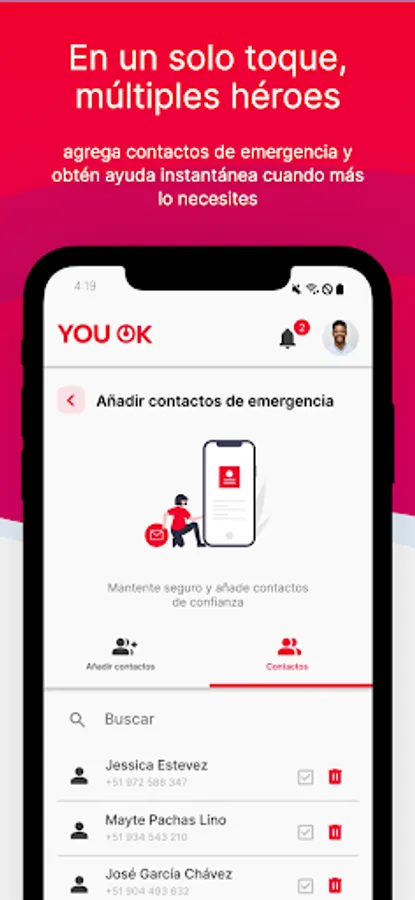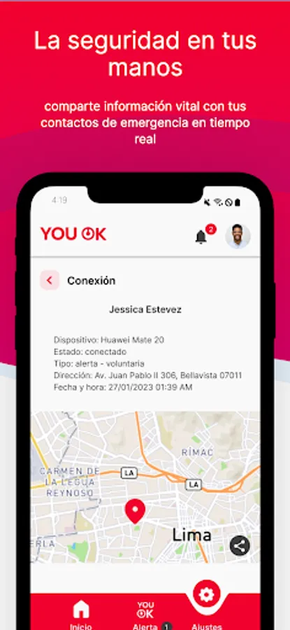 The YouOk app will allow you to send automatic alerts to your emergency contacts, police stations and more to find out the status of your security from anywhere through a single, simple and intuitive interface.