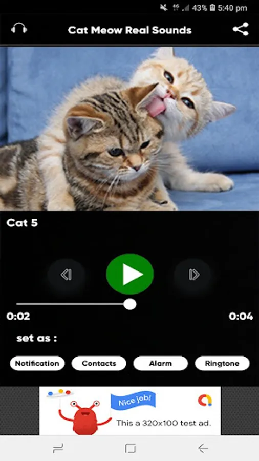 Cat sounds are real with high quality.
