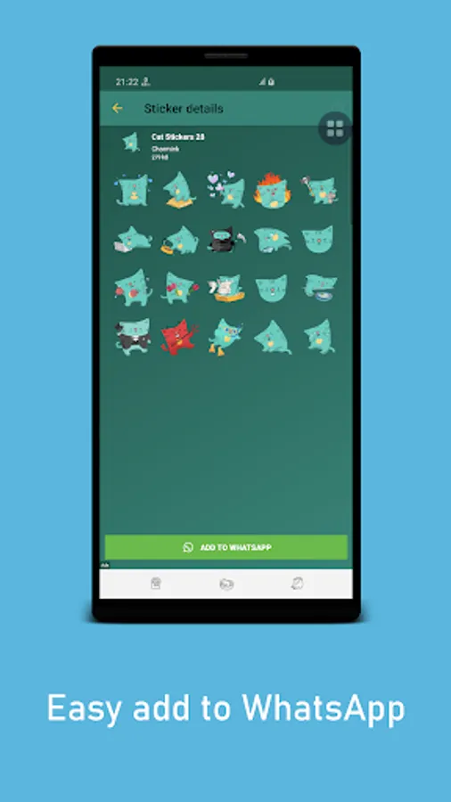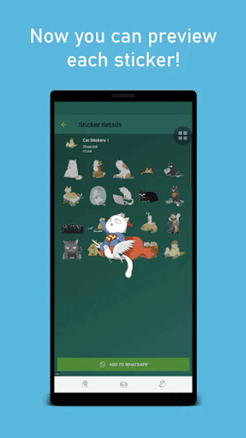 - Easy to use: Choose the Cat sticker packs you want and click the Add To WhatsApp Stickers Button.