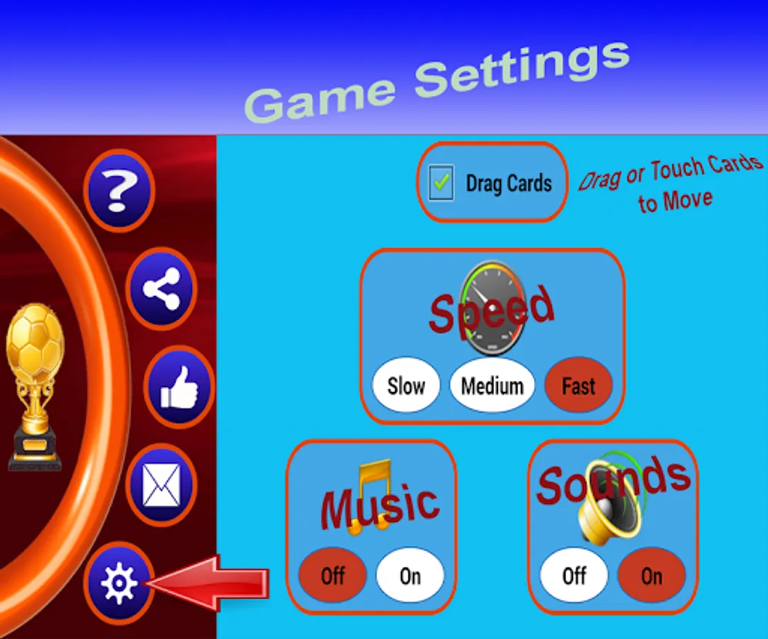 --> Option to either drag cards or touch cards