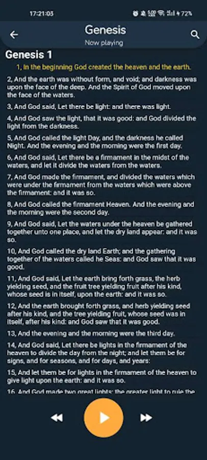 But that's not all. Our app also includes a range of useful features and utilities to enhance your listening experience. You can easily navigate the Bible using our intuitive interface, create bookmarks to mark your favorite passages, and even adjust the playback speed to suit your preferences.