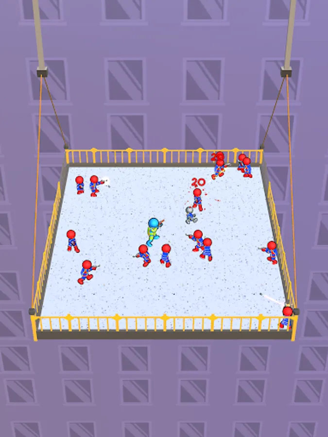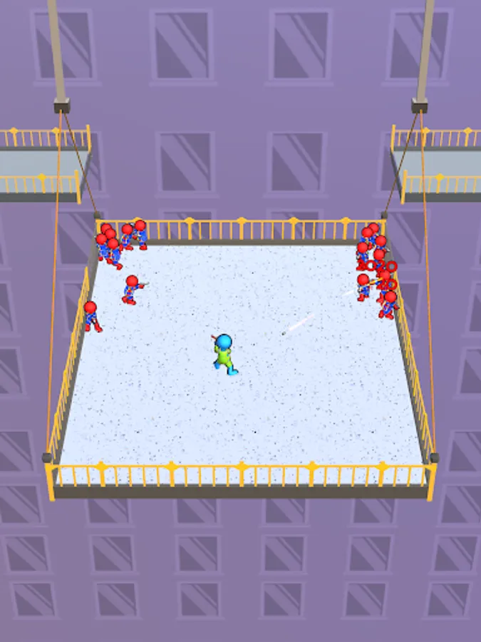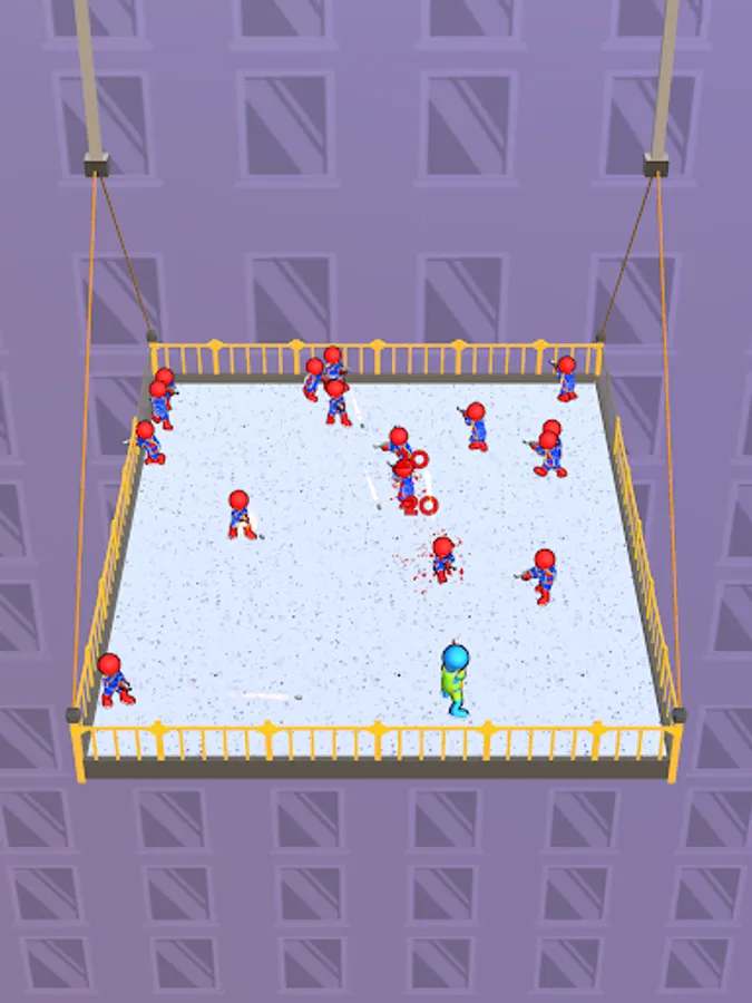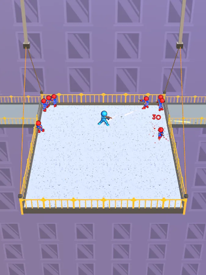 Kill the enemies in the elevator and upgrade to the highest level, the higher you go, the higher your enemies will rise. Use your weapons and destroy the enemies.