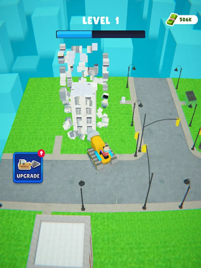 Upgrade your demolisher and demolish all the cities. Upgrade yourself then make more money and be more stronger.