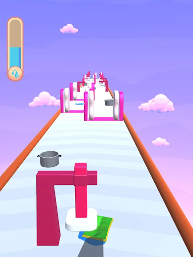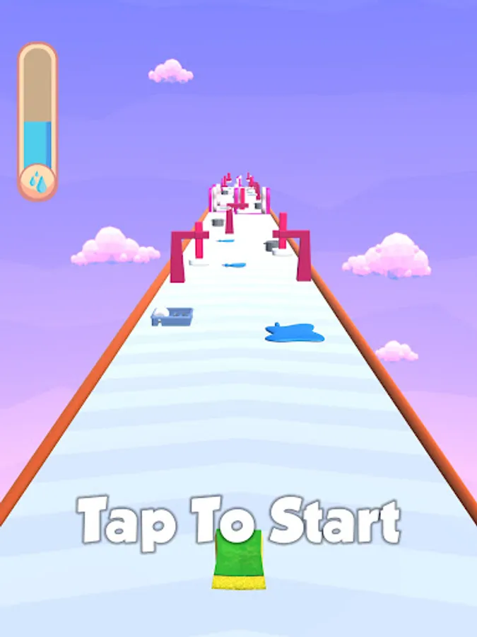 Clean the water with the sponge and stay away of the obstacles. Clean all the water on the platform and see how much water you collect at the end of the game. Stay away from obstacles that want to squeeze your water.