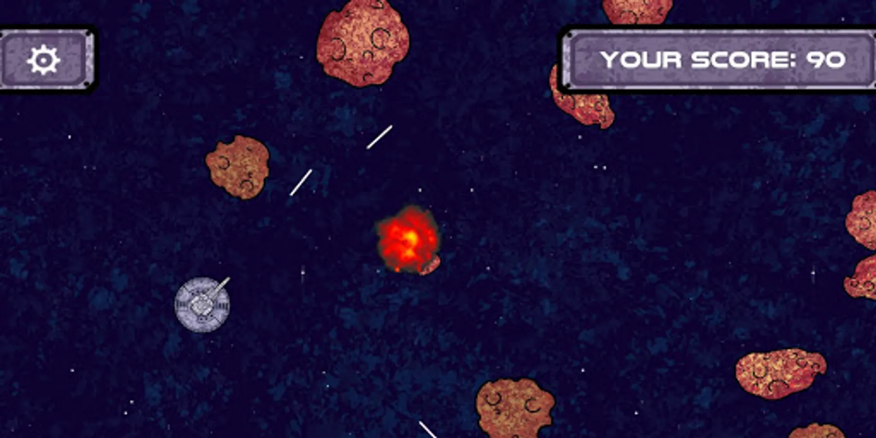 Your spaceship has run out of fuel, so you can only move with the impulse of your deck gun. Get rid of asteroids and hold out for as long as possible!