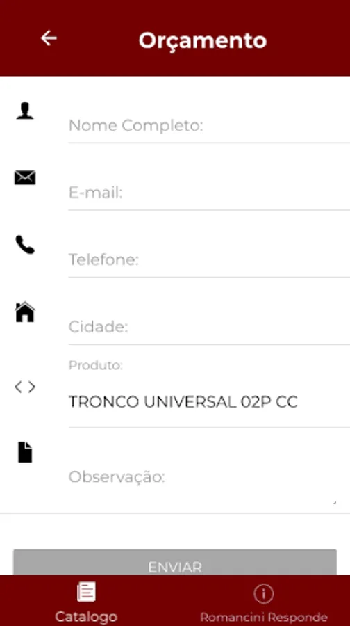 An application where the customer finds all the Romancini products and is able to place an order for a quote where a seller or representative will contact him.
