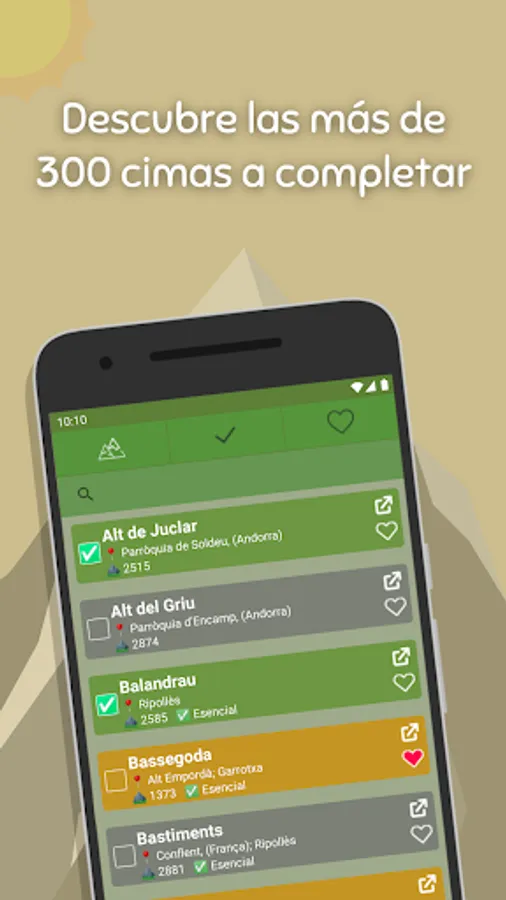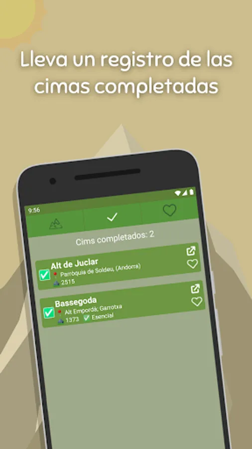 → Mark as completed the routes that you have already done so that they appear in the area of completed mountain peaks and you can keep track of how you carry the challenge and how many peaks you have completed.