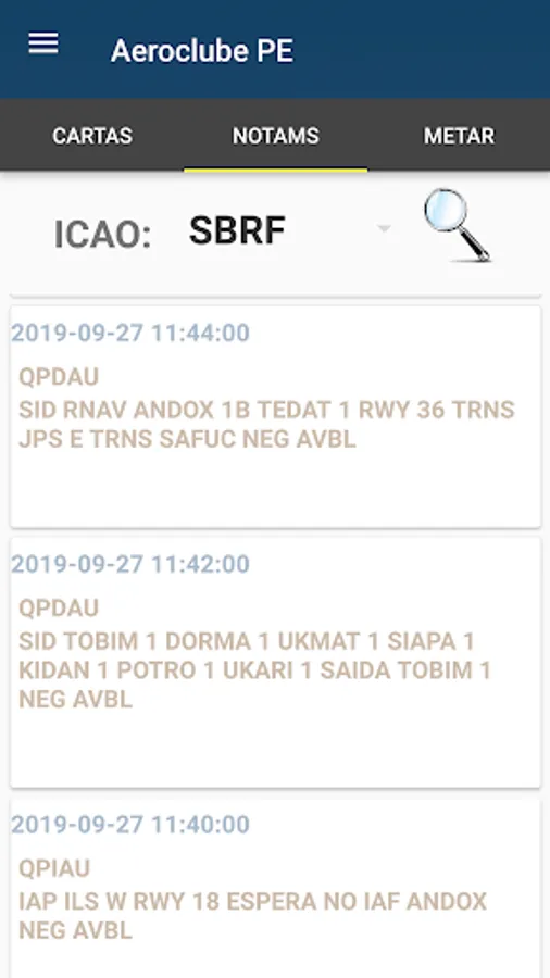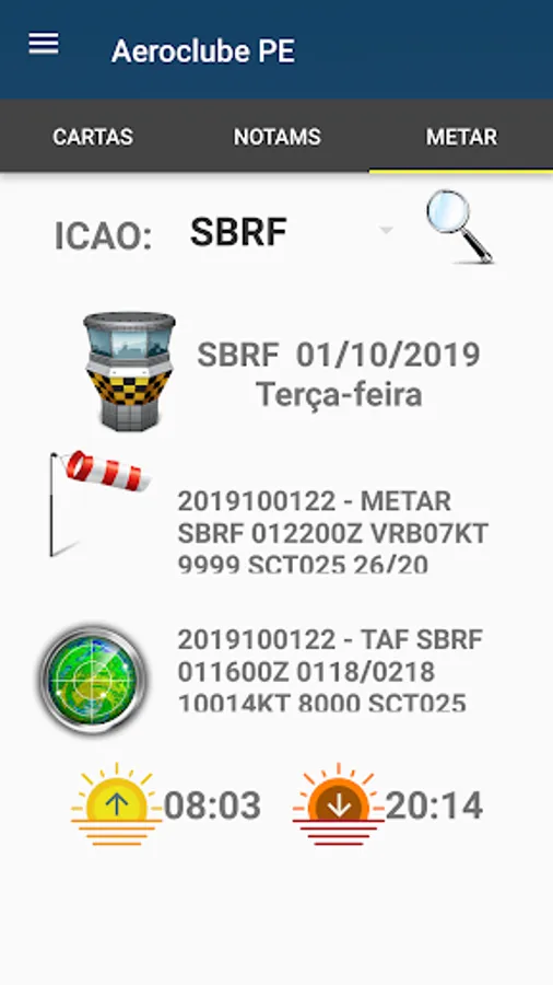 Through the application you will make a safer flight queried Real-time weather data, consulting the aerodrome charts, as well as the departure charts of them for an IFR flight see the aerodrome VACs for VFR flights. Also check the sunrise and sunset time thus avoiding problems in your navigation.