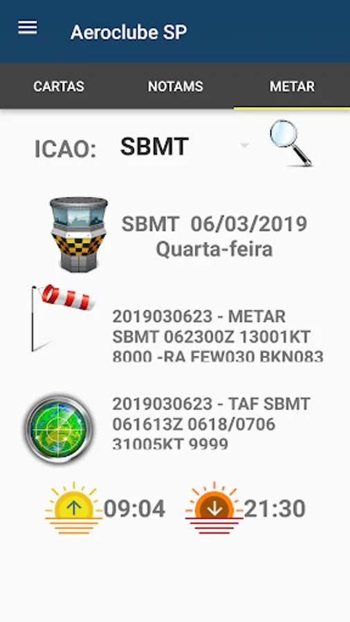 Through the application you will perform a safer flight with real-time weather data, referring to the aerodrome charts, as well as their departure letters for an IFR flight, check the aerodrome VACs for the VFR flights. Also check the sunrise and sunset time, thus avoiding problems in your navigation.
