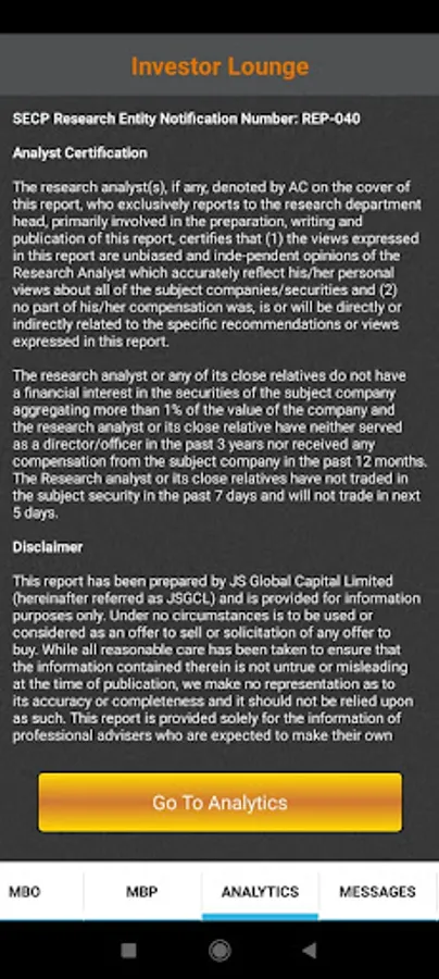 JSGCL Tick also allows you to Signup your account Digitally in PSX, Get quick access to Trade, real time access to PSX quotes, track your portfolio and market movement, get live research in the Analytics Tab, and. With this app, the stock market as well as the investment world is virtually in your hand