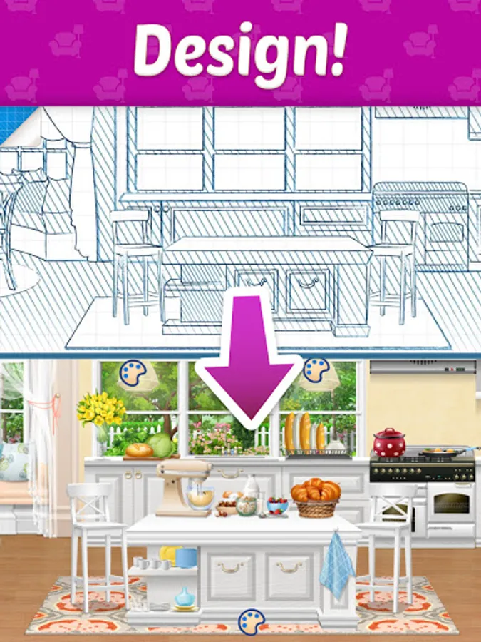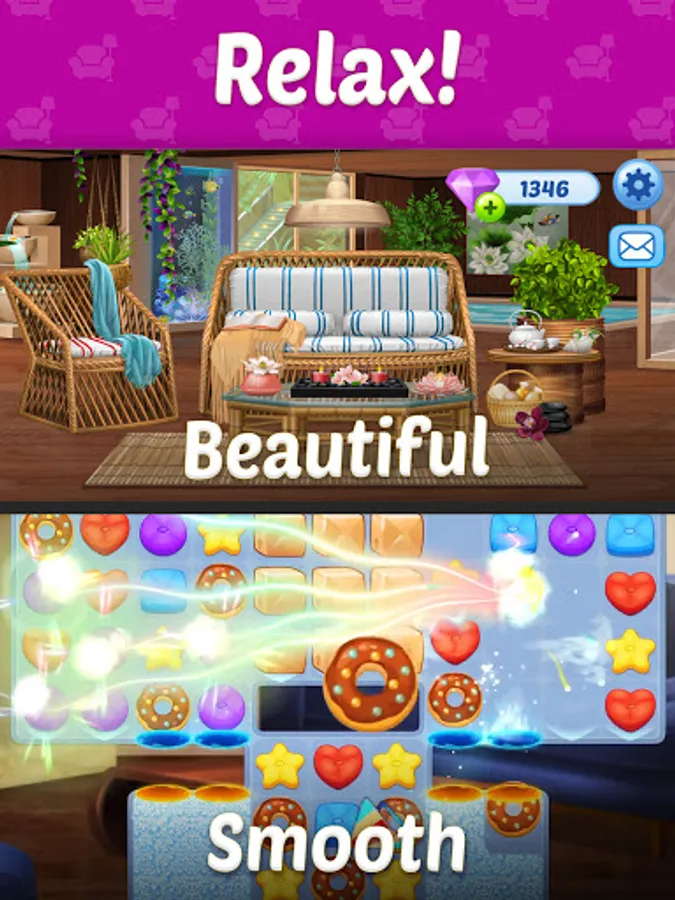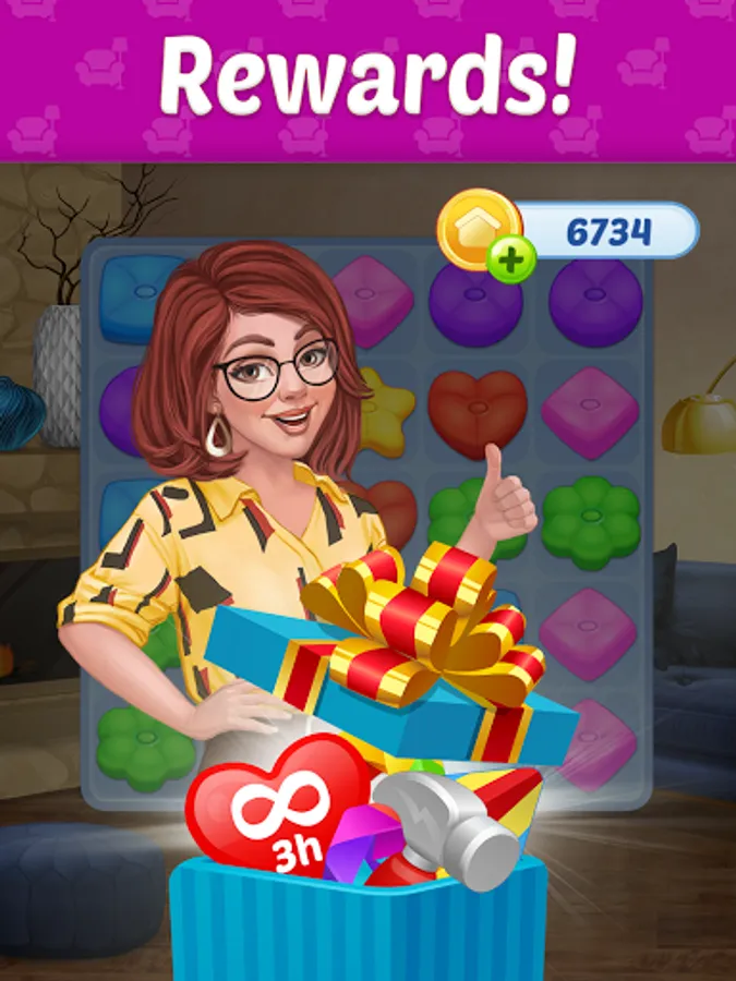Welcome to Creative Spaces! Relax and play the most engaging design and decorating game along with match 3 puzzles!