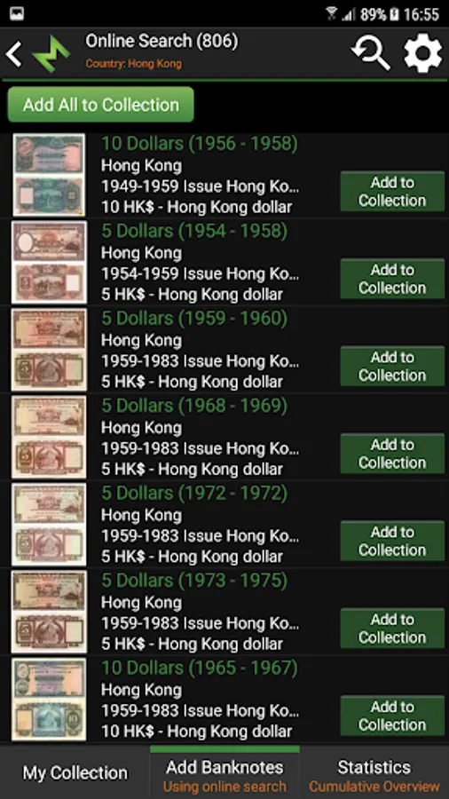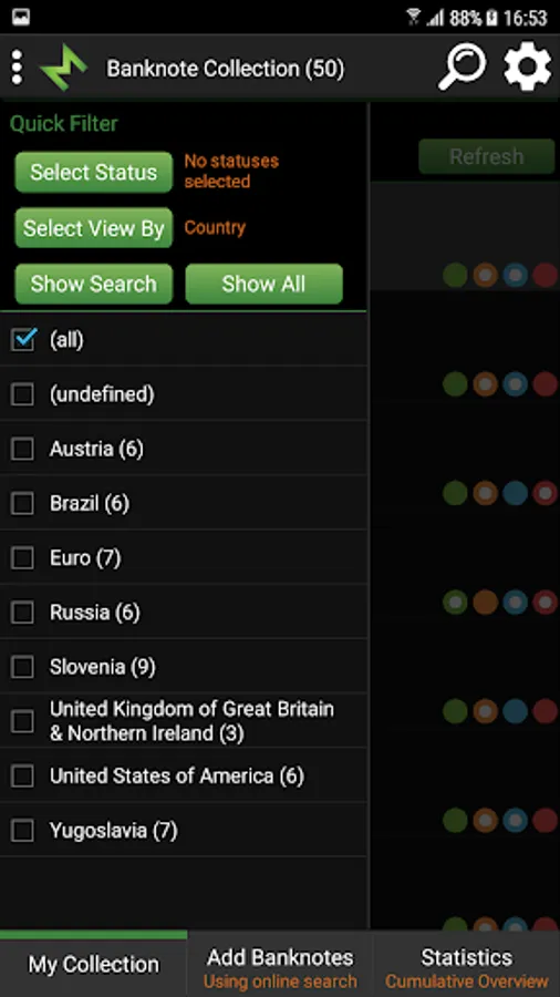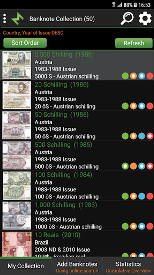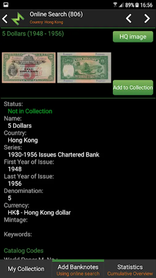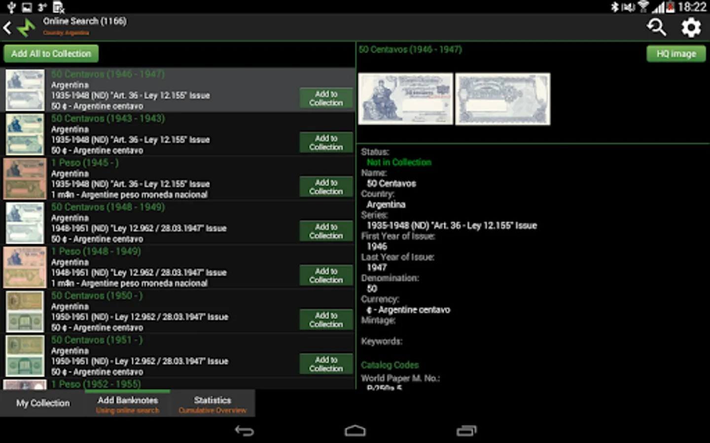 Tag your banknotes with Have, Wish, Trade and Sell status by simple click on status button or customize your own status list.