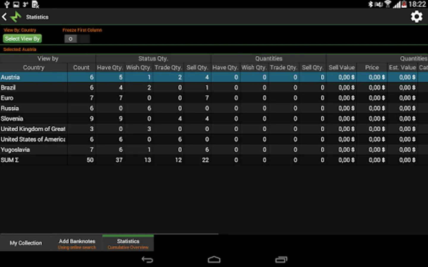 Simply manage your banknote inventory. You can store multiple quantities and values by condition.