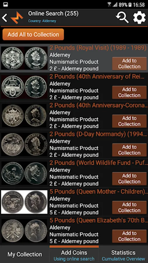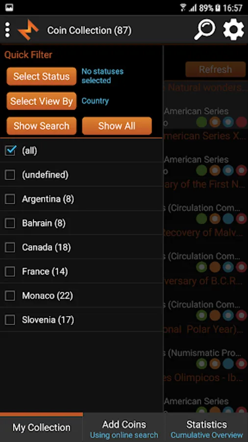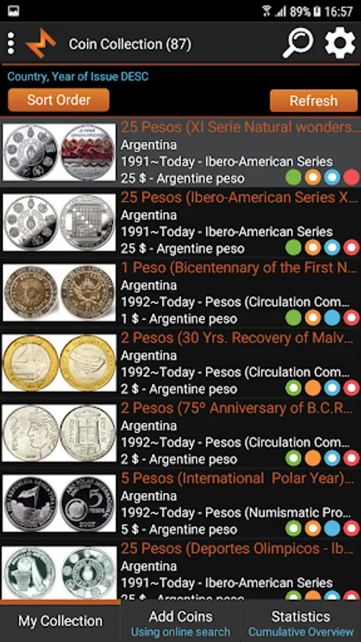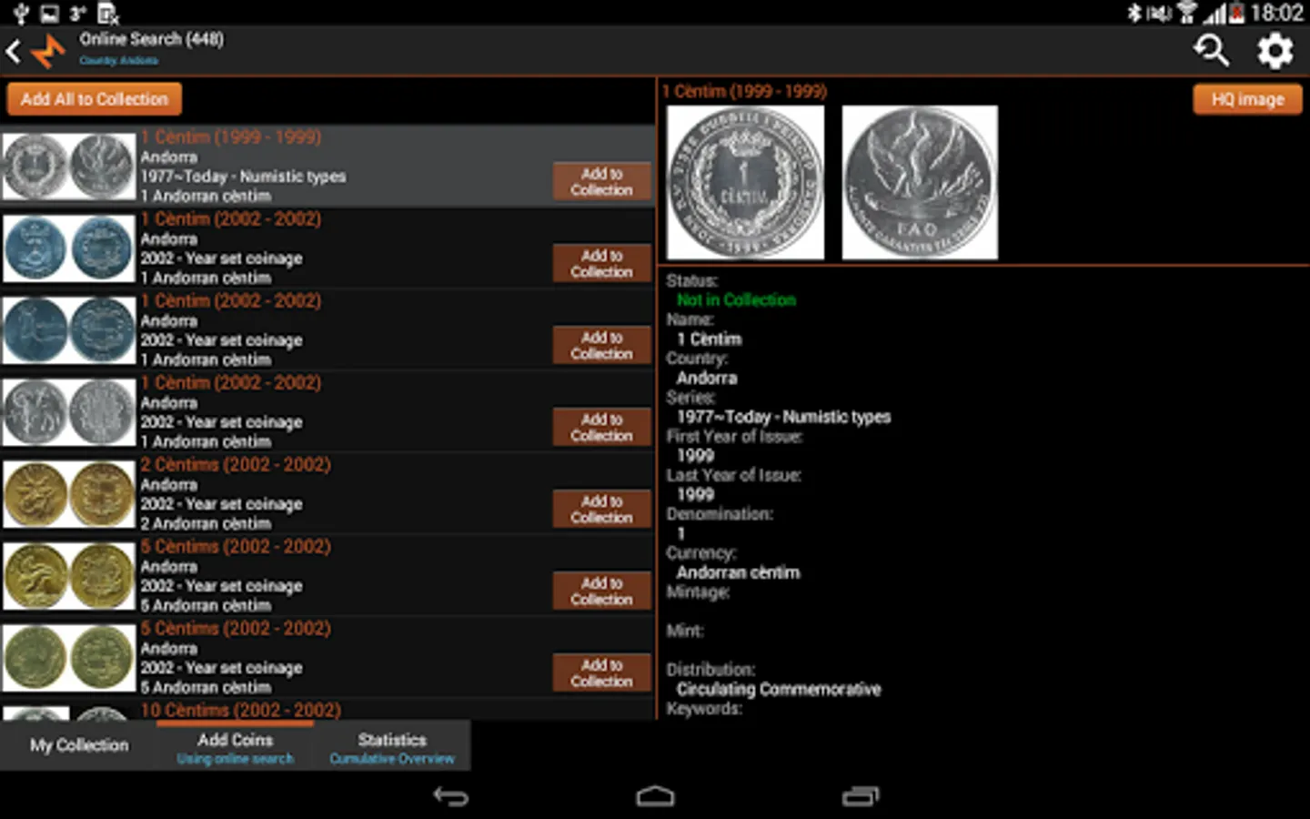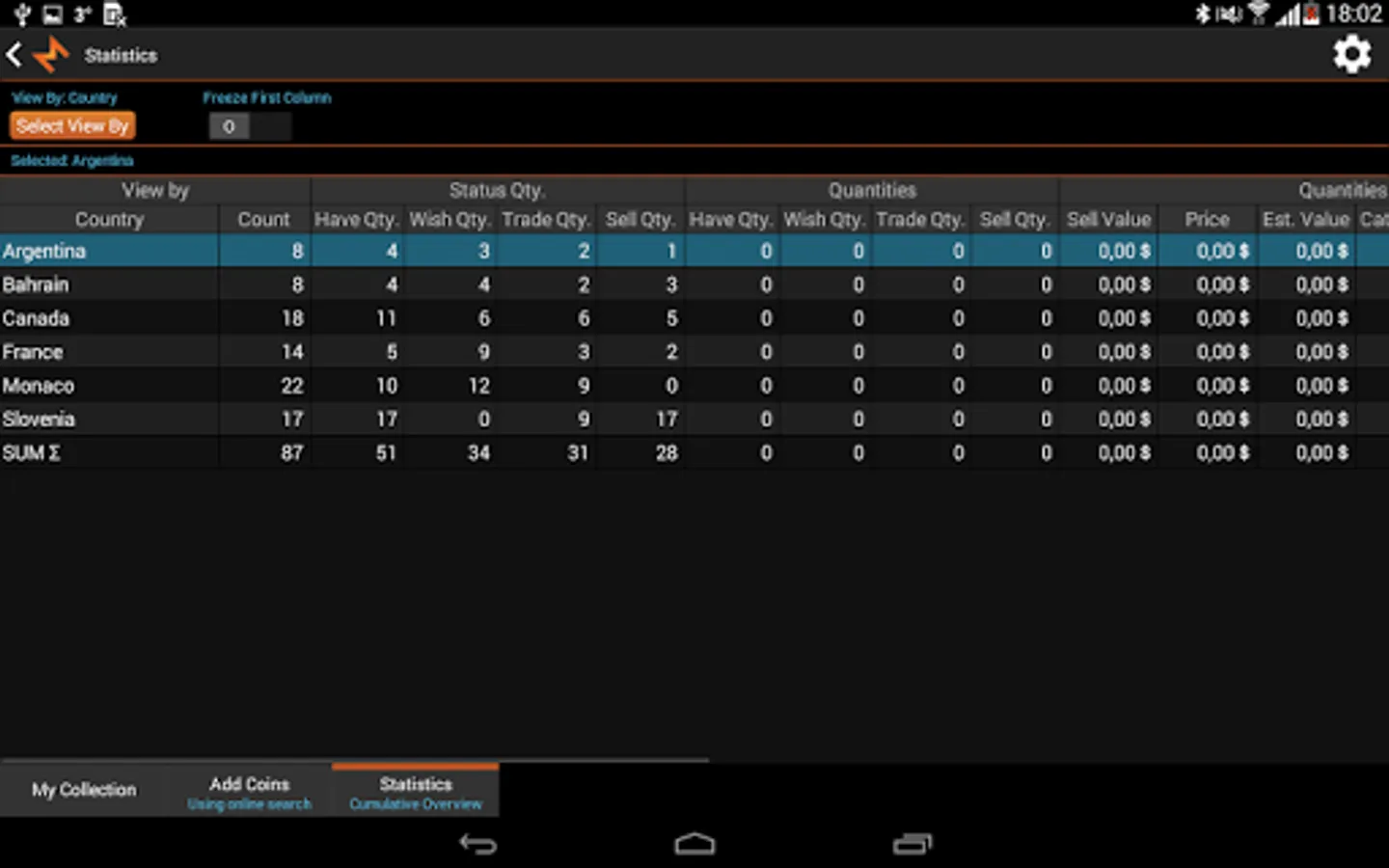 Tag your coins with Have, Wish, Trade and Sell status by simple click on status button or customize your own status list.