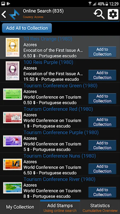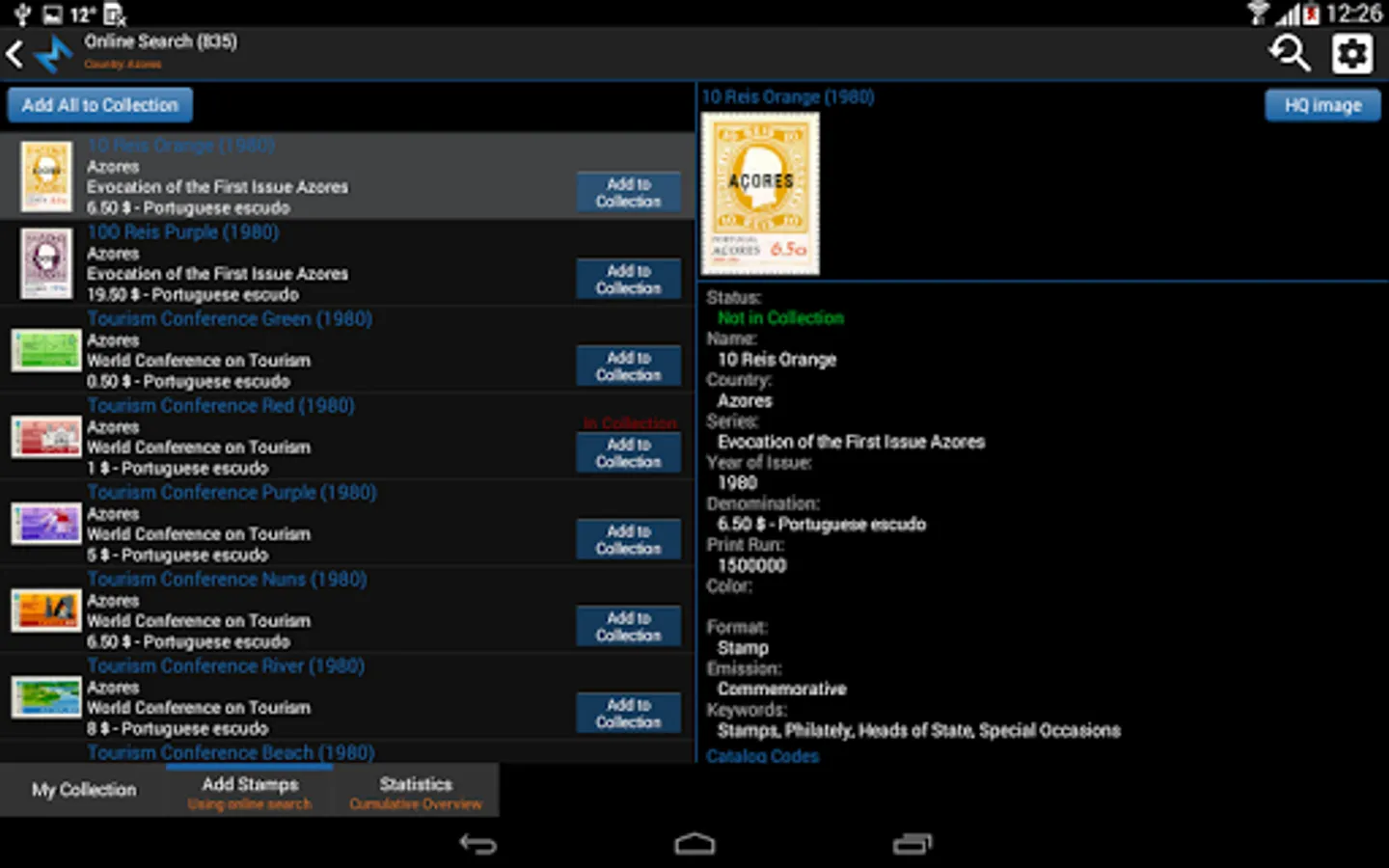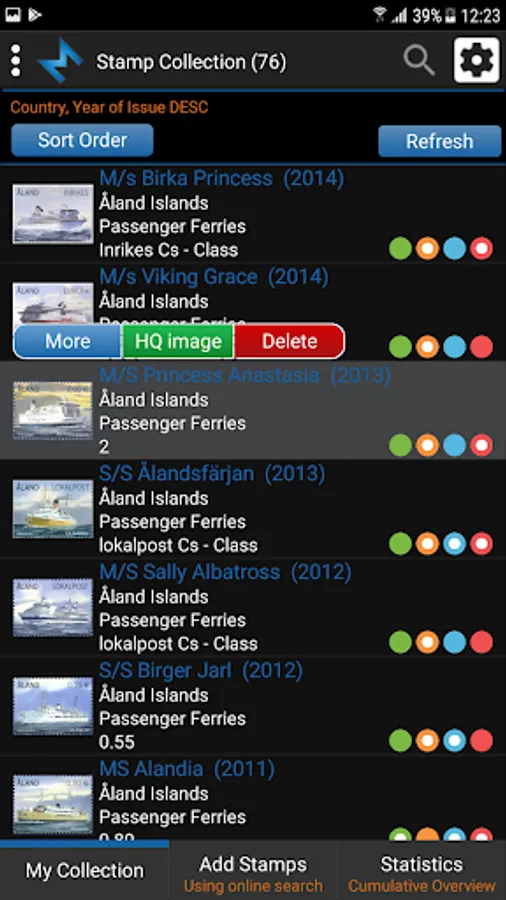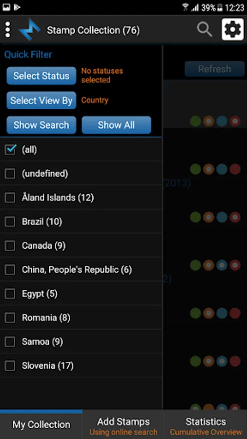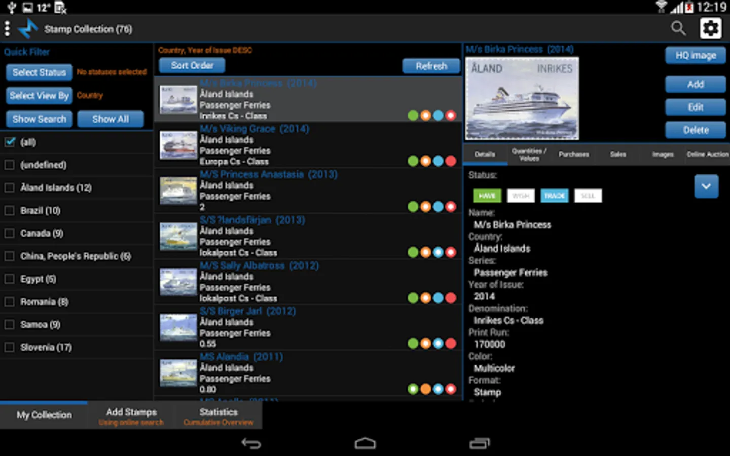 Tag your stamps with Have, Wish, Trade and Sell status by simple click on status button or customize your own status list.