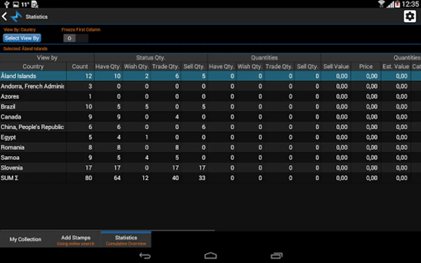 Simply manage your stamp inventory. You can store multiple quantities and values by condition.