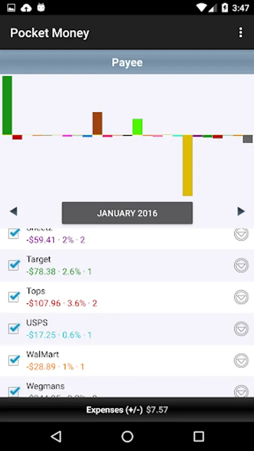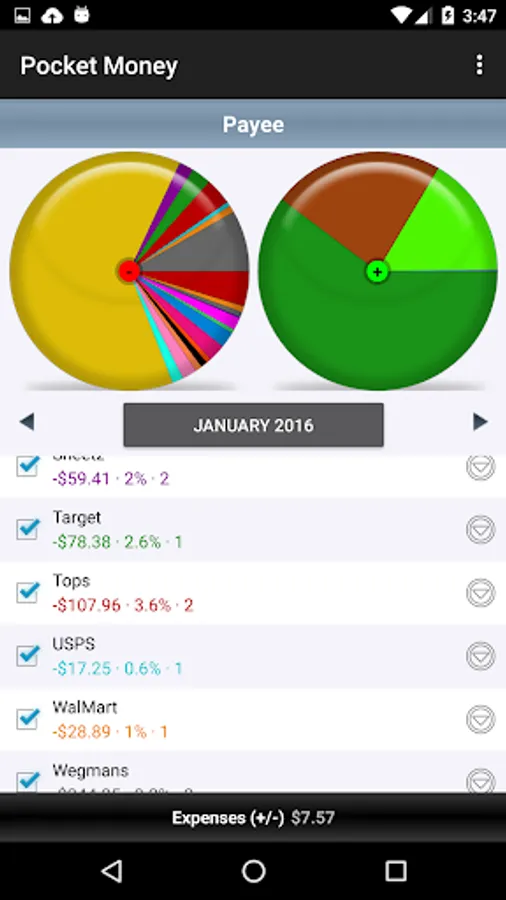 - Analyze your overall financial health by using the built-in reporting features of PocketMoney.