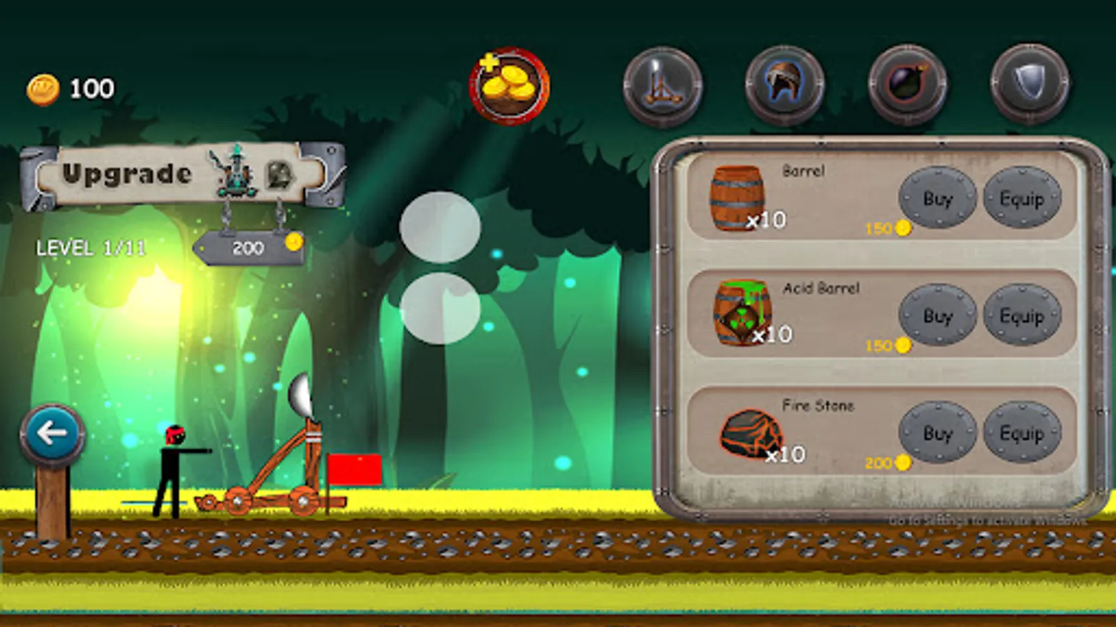 To charge the catapult and pick the thrust, tap and pull the screen. Release to hurl the stone at your foes, destroying them! It's time to fight! You still have time to foil the stickmen's cunning schemes!