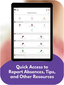 The app includes information for the district and all schools. Filter by the school your child attends to feature information for that school.