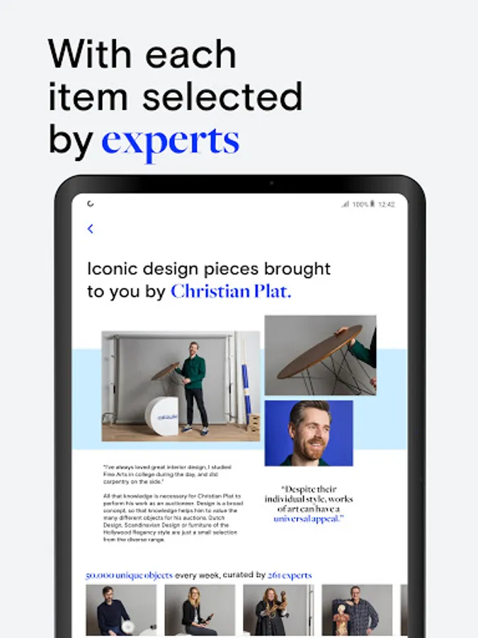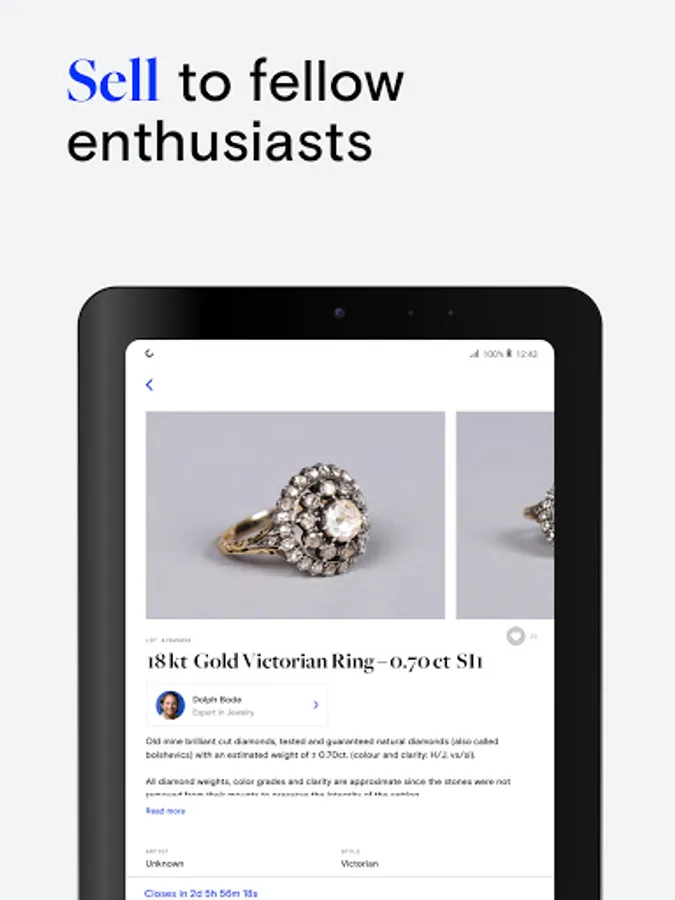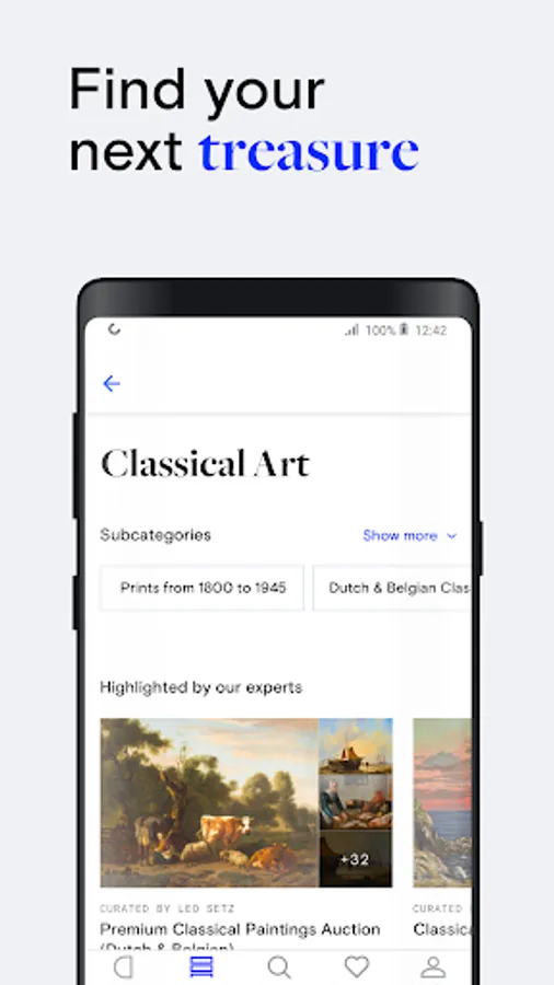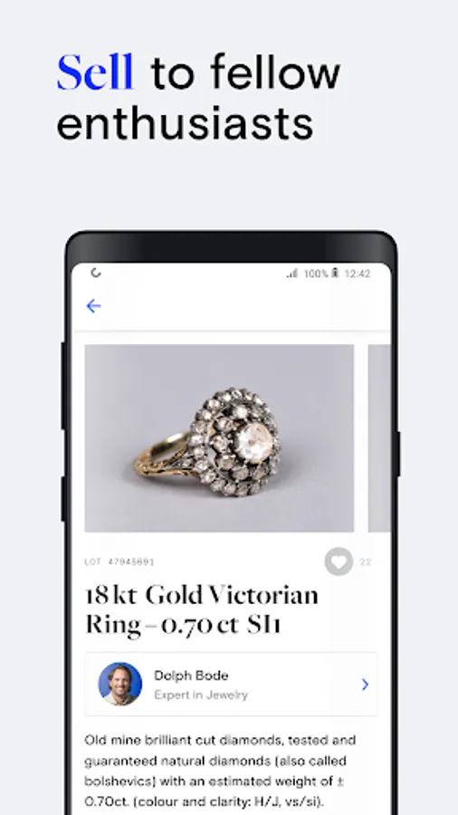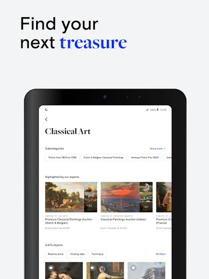 Our auctions start every Friday and are supervised by specialised experts. This guarantees varied and high-quality lot listings while our payment method lets you buy and sell securely. Download the app to find out more about what kind of objects you can buy and sell.