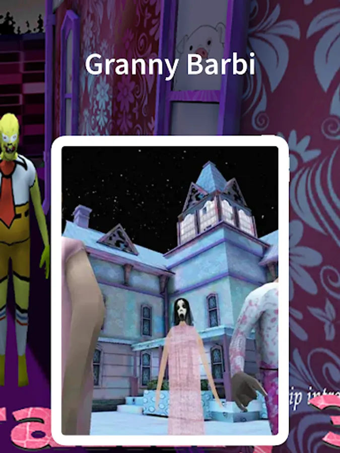 This Barbi Granny game wallpapers app allows you to set barbi granny horror talking wallpapers. Pink Granny Barbi Backgrounds offers you images of the scary pink granny barbi granny in scary mode to set as wallpaper of your smartphone and tablet devices, it can easily be used to prank friends or family members. the family and watch their surprised faces when they see or receive the horrific photo of Pink Barbie Granny, it also has many other features and surprises that you will find inside our Granny Baby scary mod.