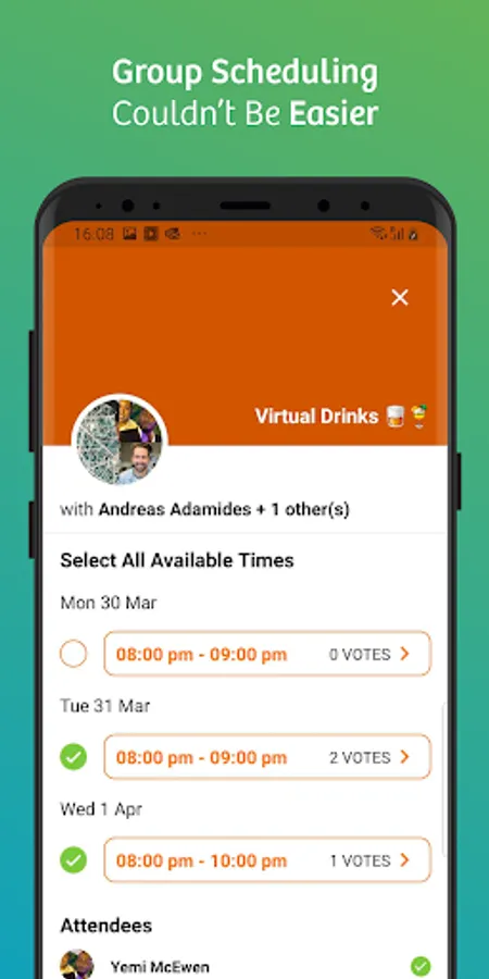 • GROUP SCHEDULING: Invite a Group to vote on which times work for them. Planning for a group of 10 or 100 people is just as easy to find the best time to meet!