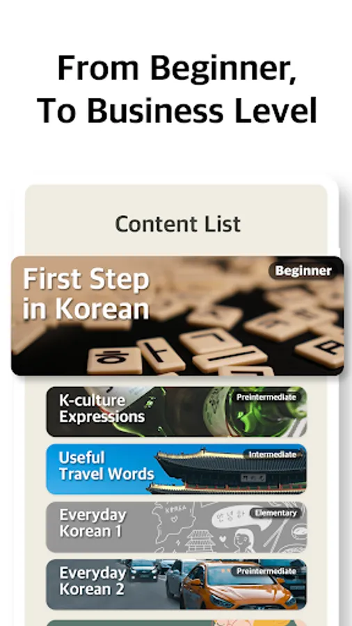 Learn Thousands of vocabularies and sentences Native expressions, grammar, basic vocabs, business expressions, and TOPIK.