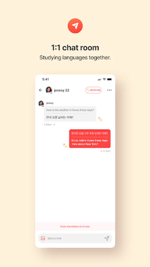 We support all languages of various countries. Even those who are studying a language, or those who are afraid of foreign languages and are reluctant to communicate with foreigners, can easily use it and study a language!