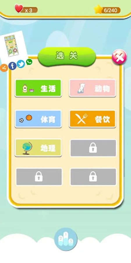 每關都有不同的主題。每關答錯超過3次為闖關失敗。