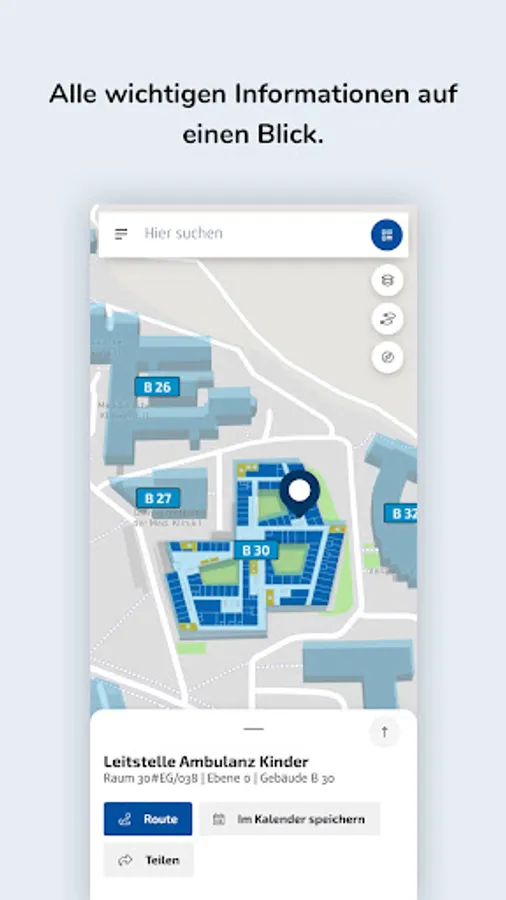 Use our app to quickly find your way around our site. Let yourself be navigated to the parking lot or directly to the destination first. We accompany you from your front door to the appointment location.