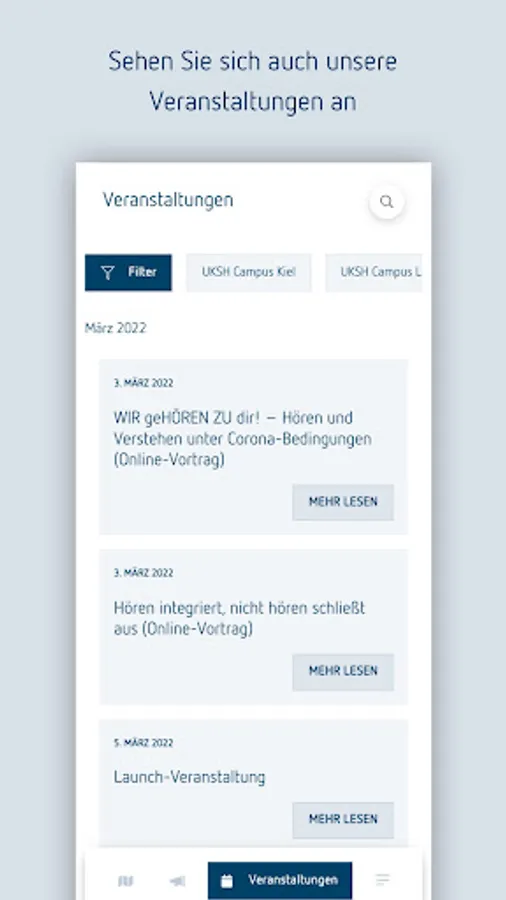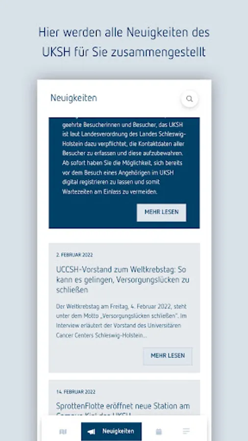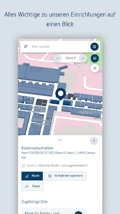 The UKSH app: Hospital application for the University Hospital Schleswig-Holstein with its locations in Kiel and Lübeck.