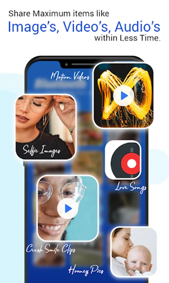 - Share Images, Videos, Audios, Documents file share easily via Bluetooth.
